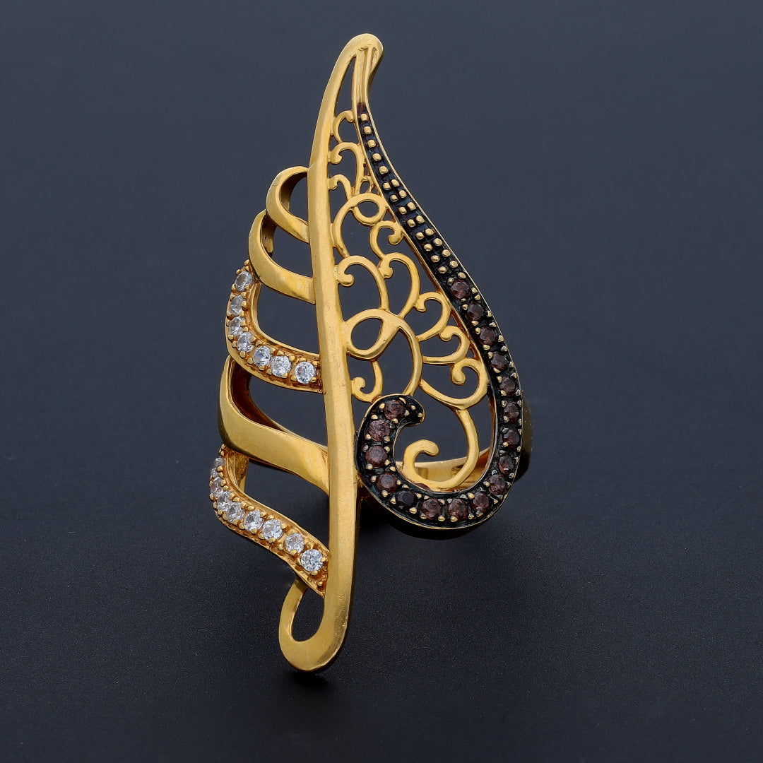 Gold Designer Diamond Leaf Ring 21KT - FKJRN21KM10479