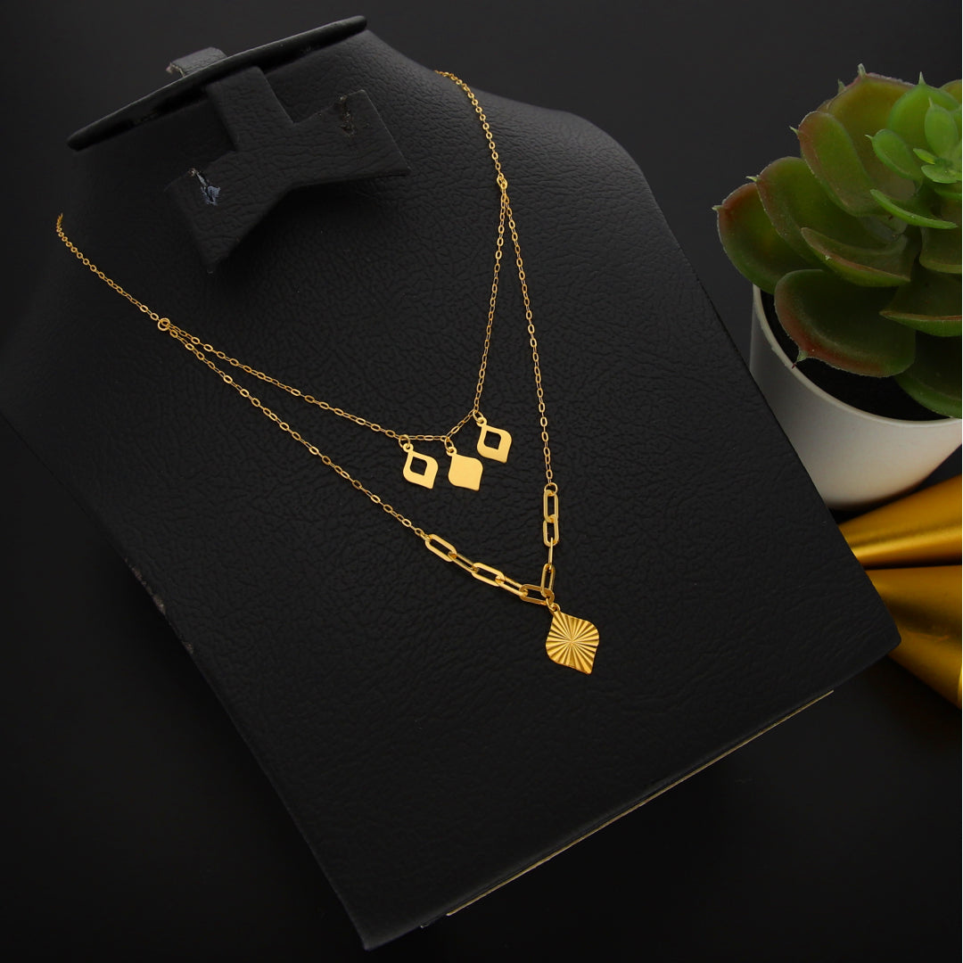 Gold Double Layered Necklace (Chain With Leaf Shaped Pendant) 21KT - FKJNKL21KM9891