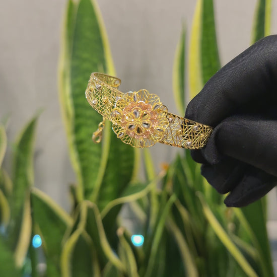 Gold Flower Design Bangle Set (Bangle and Ring) 21KT - FKJSET21KM10131