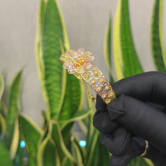 Gold Flower Shaped Designer Bangle Set (Bangle and Ring) 21KT - FKJSET21KM10116