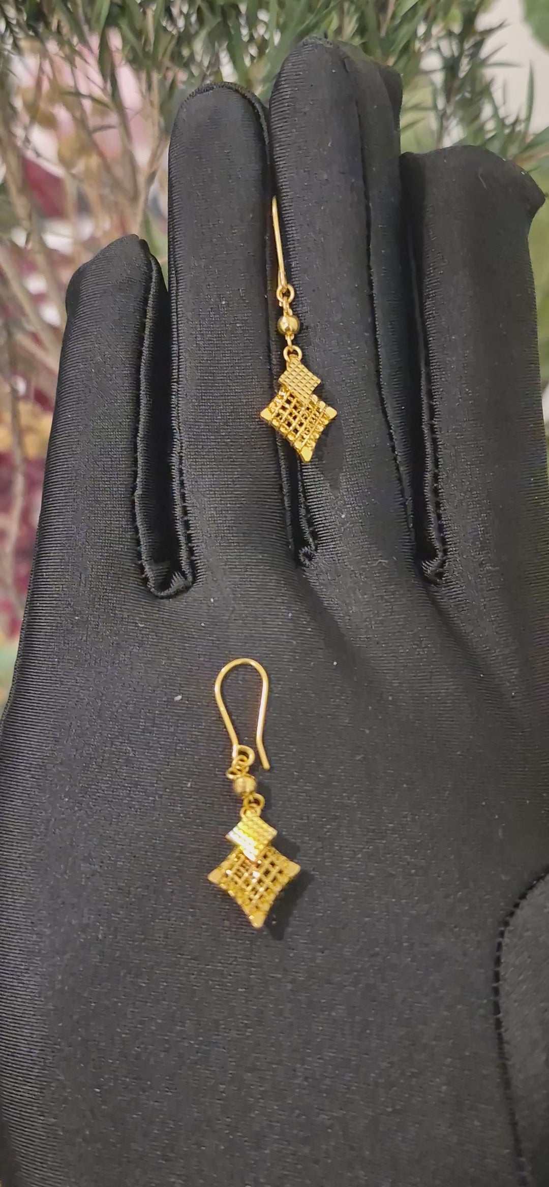 Gold Geometric Drop Earrings 21KT - FKJERN21KM11385