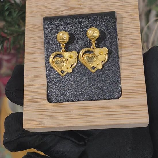 Gold Heart Blossom Earrings 21KT - FKJERN21KM11511