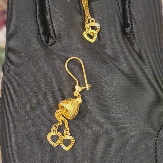 Gold Heart Drop Earrings 21KT - FKJERN21KM11377