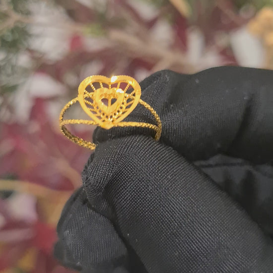 Gold Heart Shaped Turkish Design Ring 21KT - FKJRN21KM10451