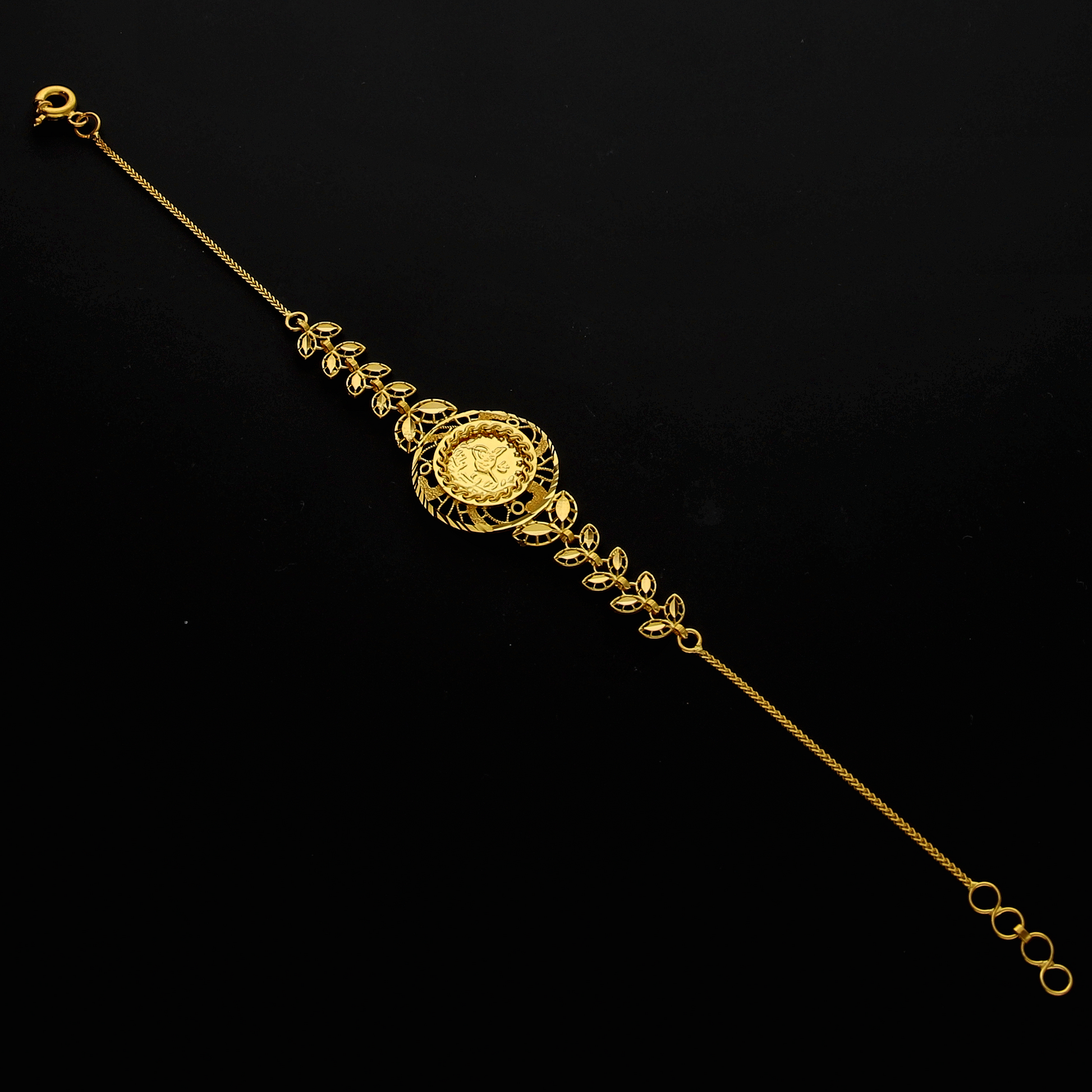 Gold Leaf Motif with Round Turkish Lira Bracelet 21KT- FKJBRL21KM10253