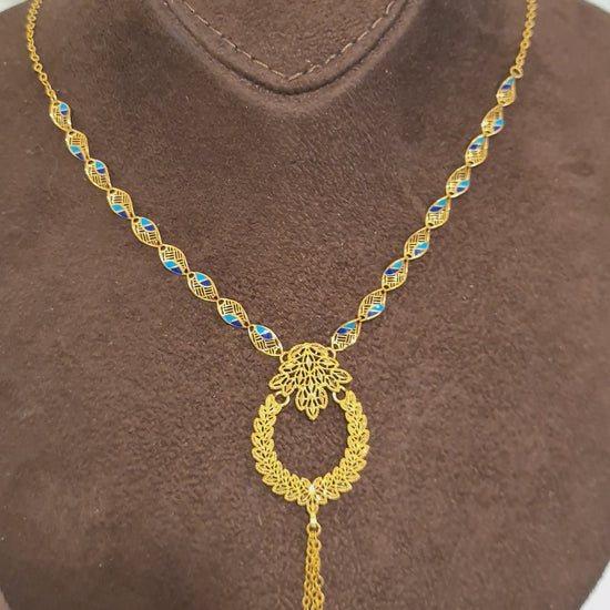 Gold Link Leaf Drop Necklace 21KT - FKJNKL21KM10345