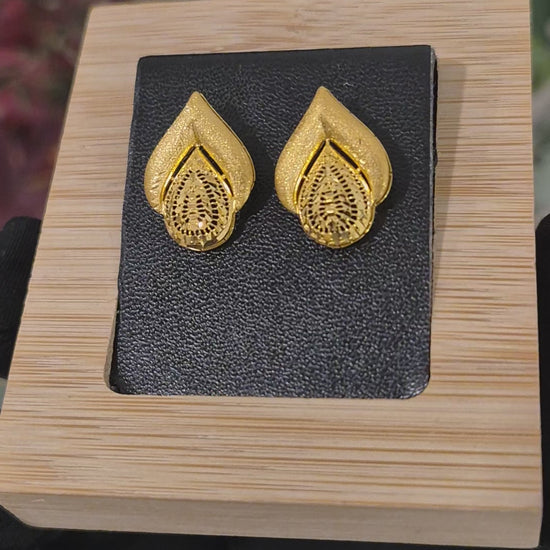 Gold Minimal Leaf Earrings 21KT - FKJERN21KM11404