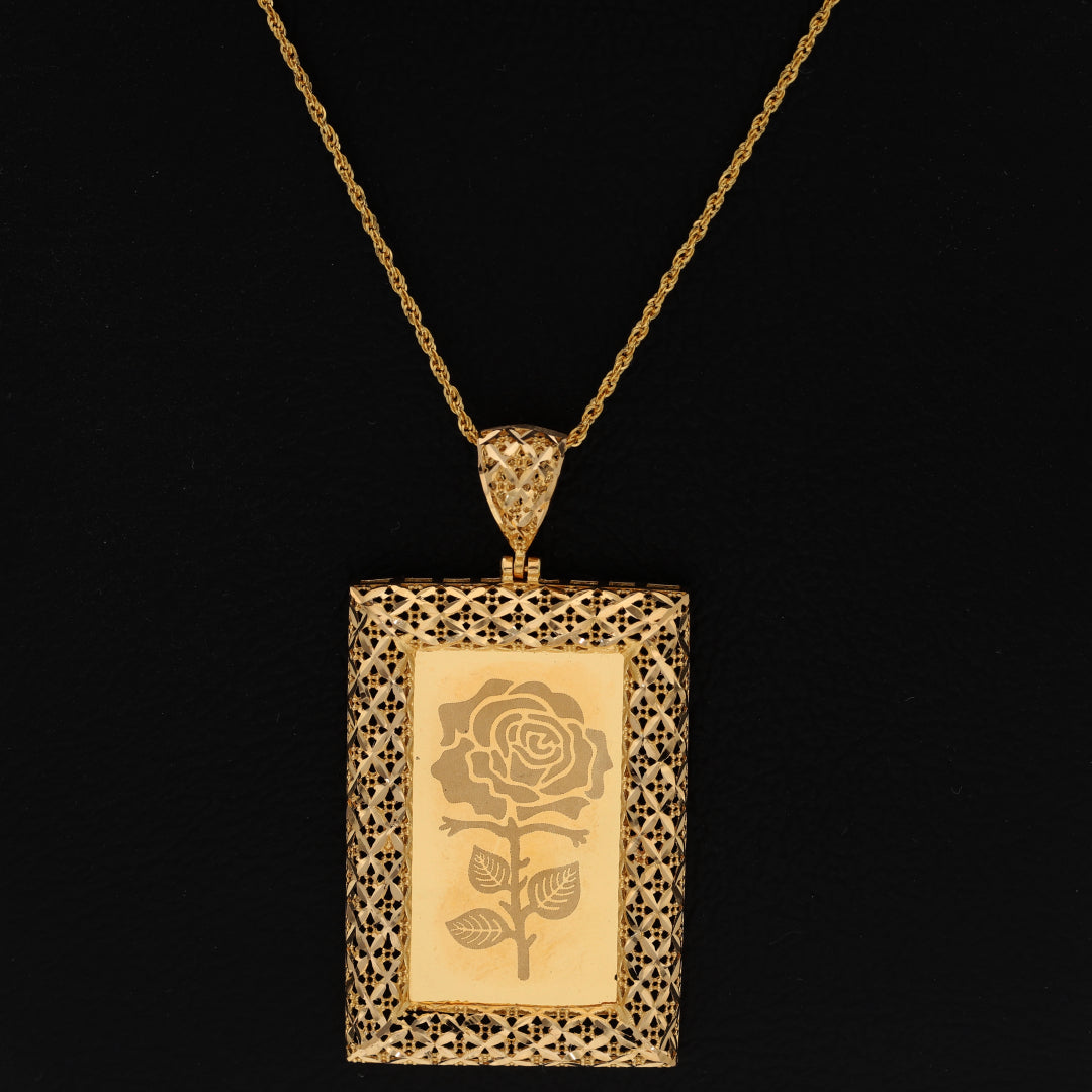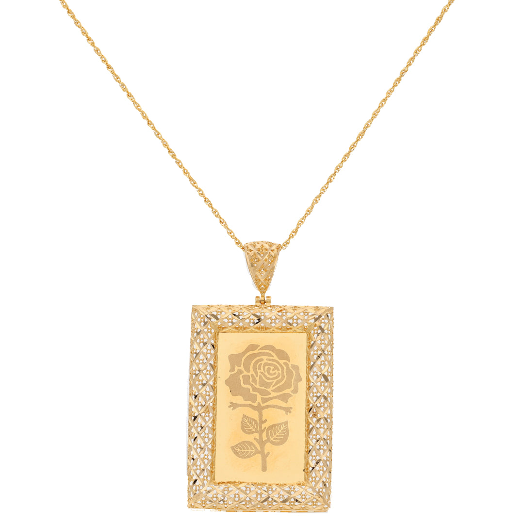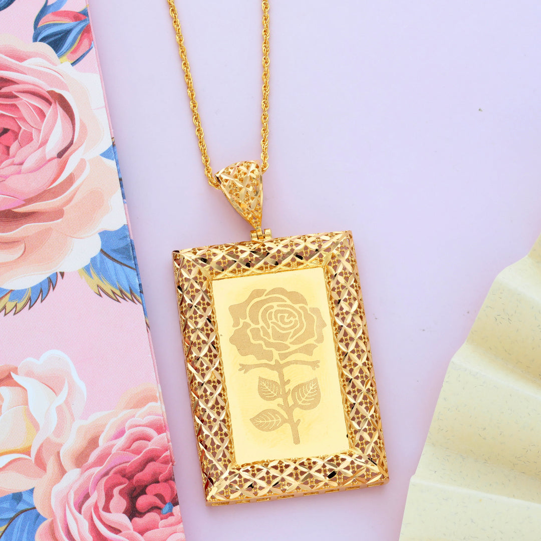 Gold Necklace (Chain Rectangle Shaped Rose Frame Pendant) 21KT - FKJNKL21KM9619