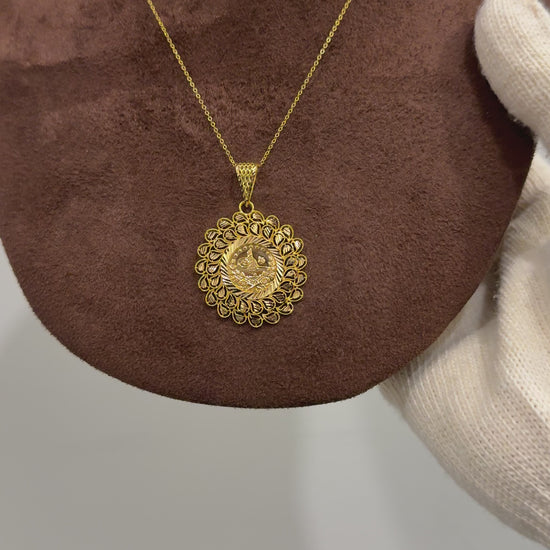 Gold Necklace (Chain with Filigree Design Round Shaped Pendant) 21KT - FKJNKL21KM10142