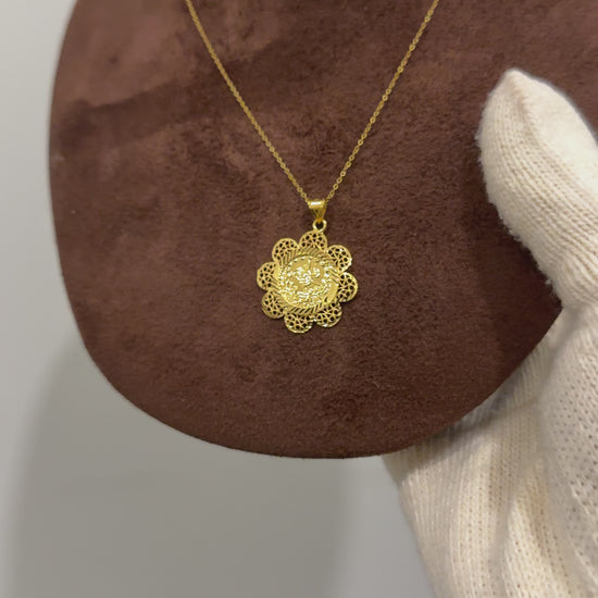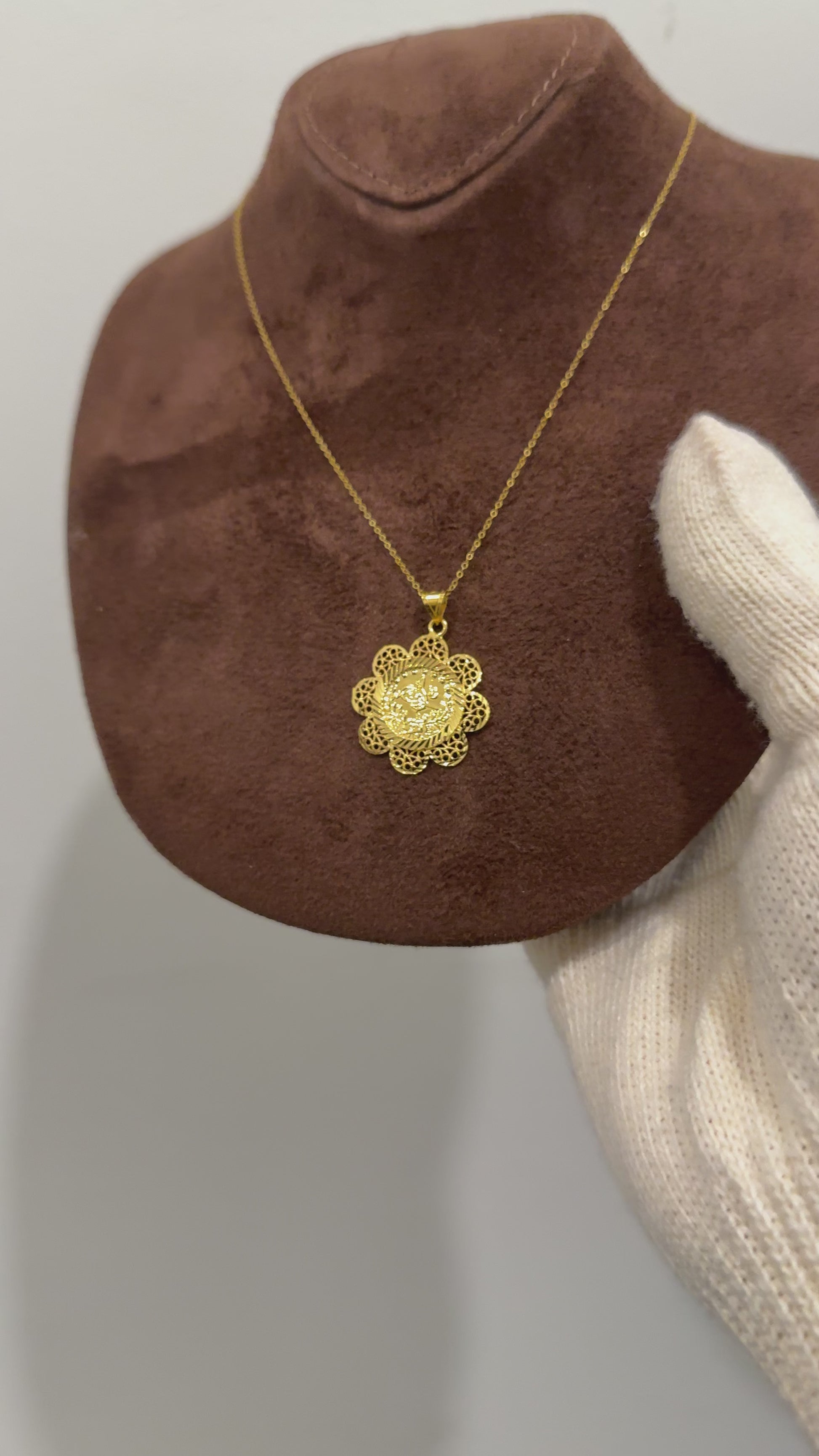 Gold Necklace (Chain with Filigree Design Turkish Lira Pendant) 21KT - FKJNKL21KM10143
