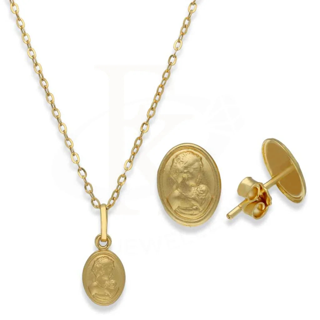 Gold Oval Shaped Pendant Set (Necklace and Earrings) 18KT - FKJNKLST18K2363