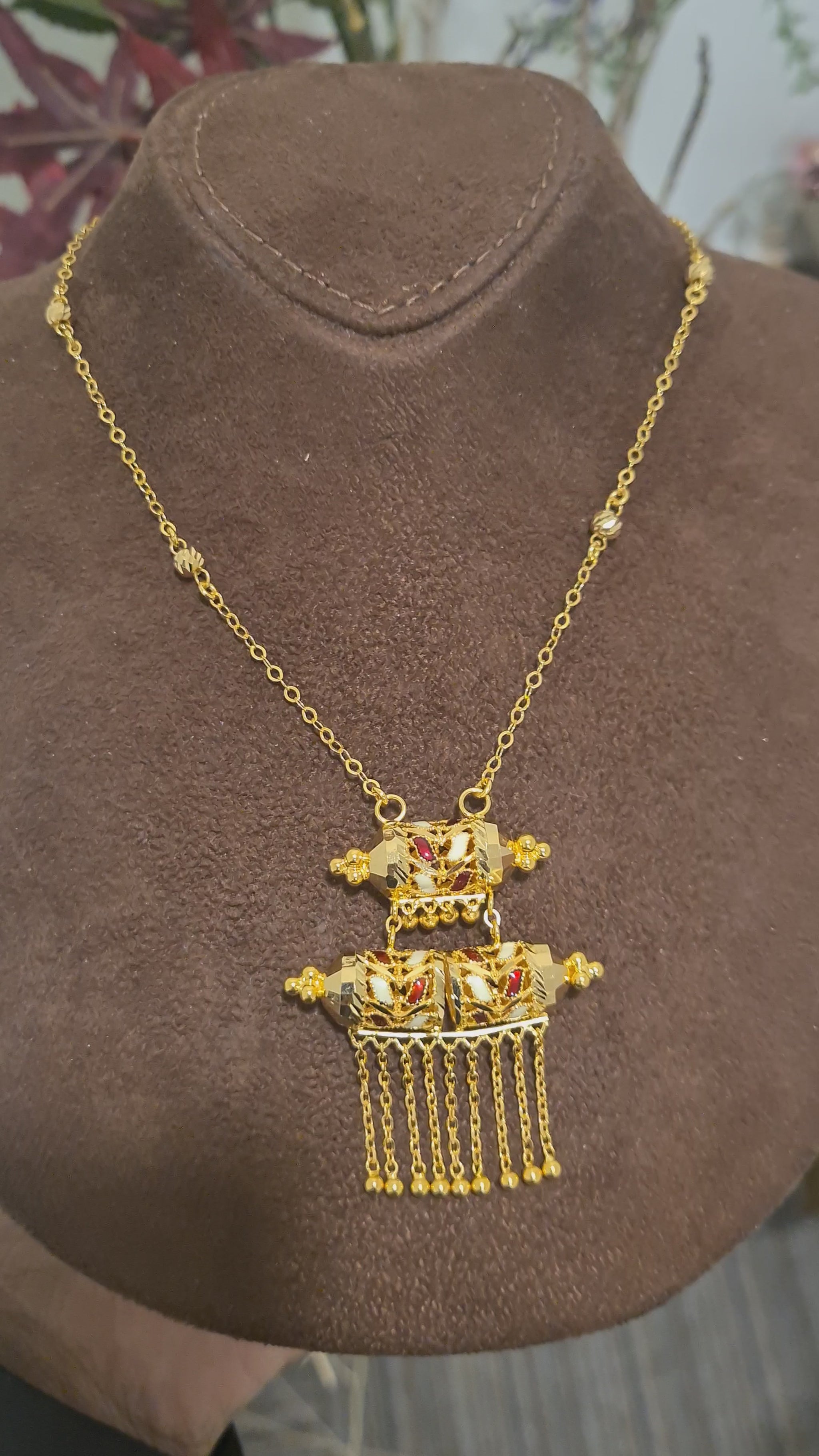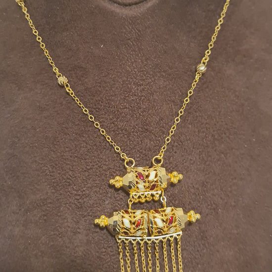 Gold Red Accent Necklace 21KT - FKJNKL21KM10380