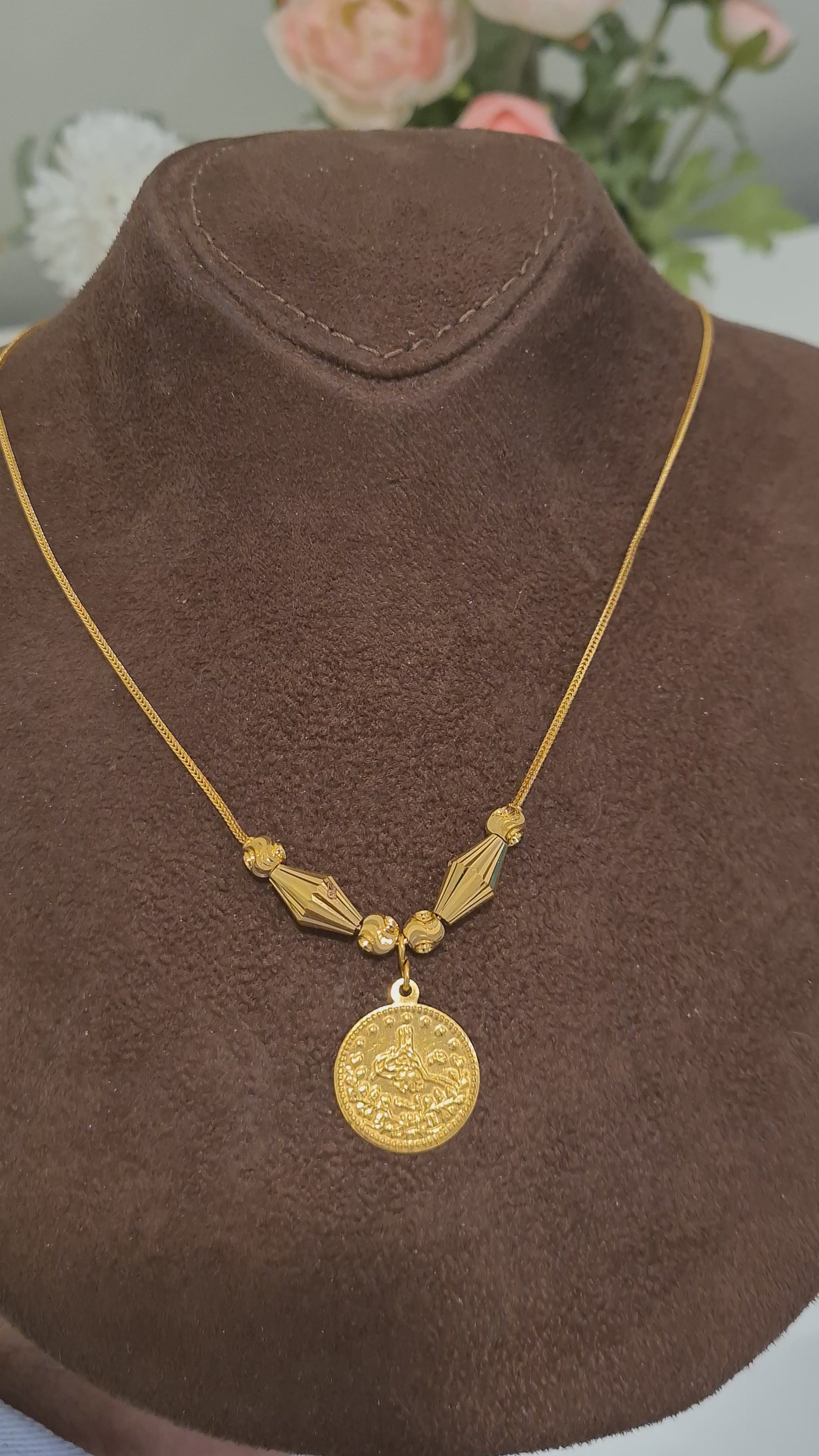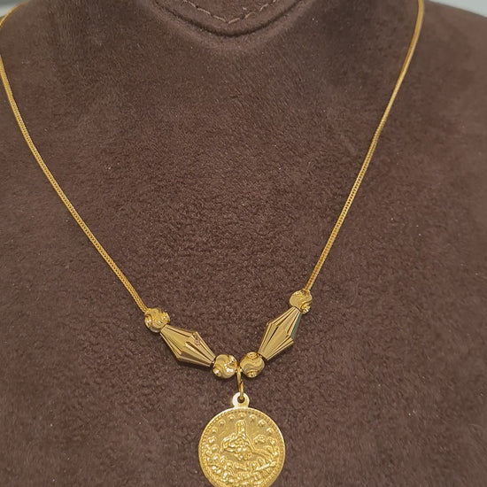 Gold Round Lira Drop Necklace 21KT - FKJNKL21KM10355