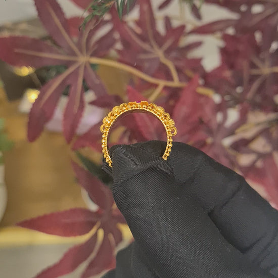 Gold Ruby Studded Flower Ring 21KT - FKJRN21KM10481
