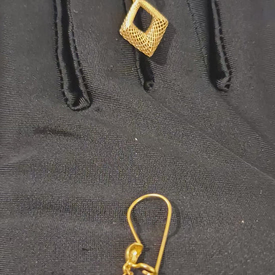 Gold Square Filigree Earrings 21KT - FKJERN21KM11482