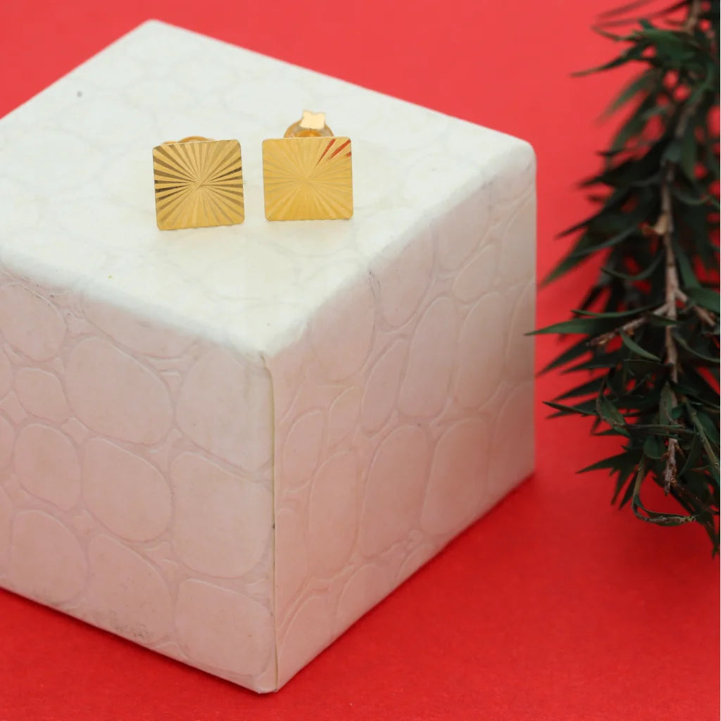 Gold Square Shaped Stud Earrings 21KT - FKJERN21KM8626