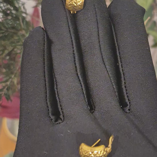 Gold Textured Dome Earrings 21KT - FKJERN21KM11517