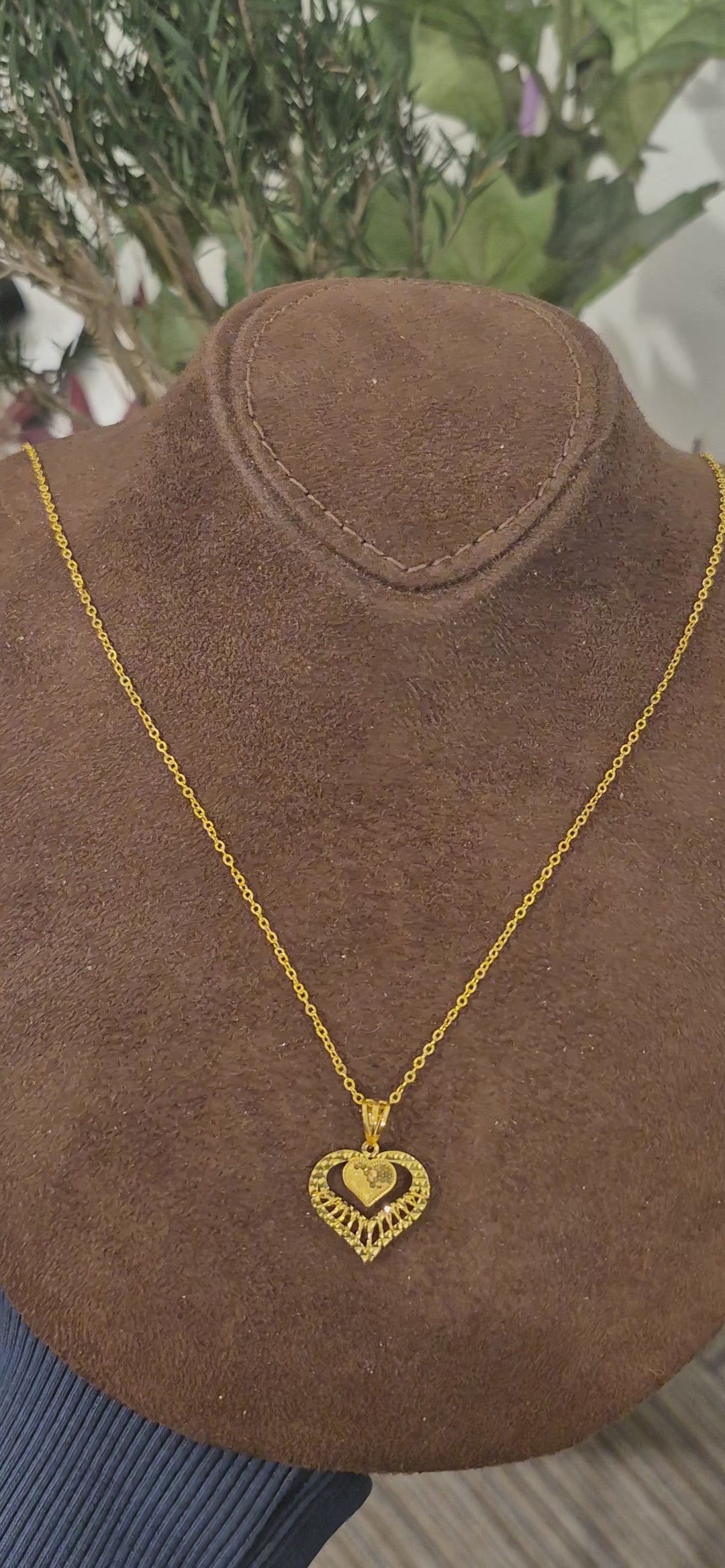 Gold Textured Heart Necklace 21KT - FKJNKL21KM11339