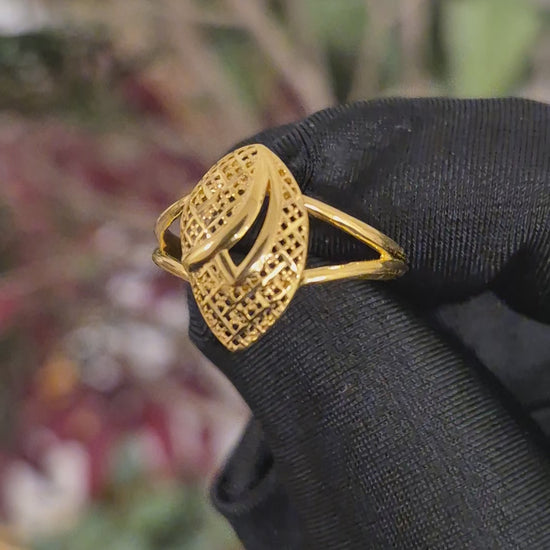Gold Textured Leaf Ring 21KT - FKJRN21KM11202