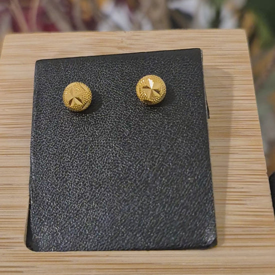 Gold Textured Star Ball Earrings 21KT - FKJERN21KM11530