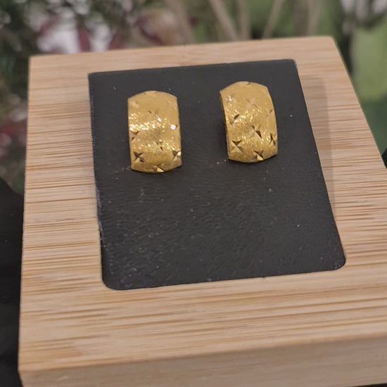 Gold Textured Star Pattern Earrings 21KT - FKJERN21KM11430