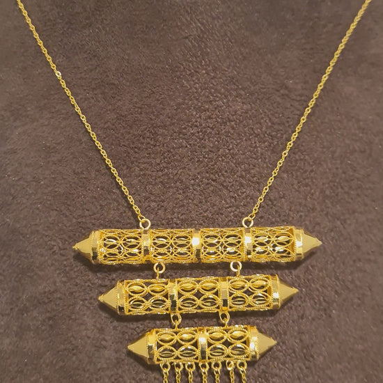 Gold Triple Row Filigree Necklace 21KT - FKJNKL21KM10379