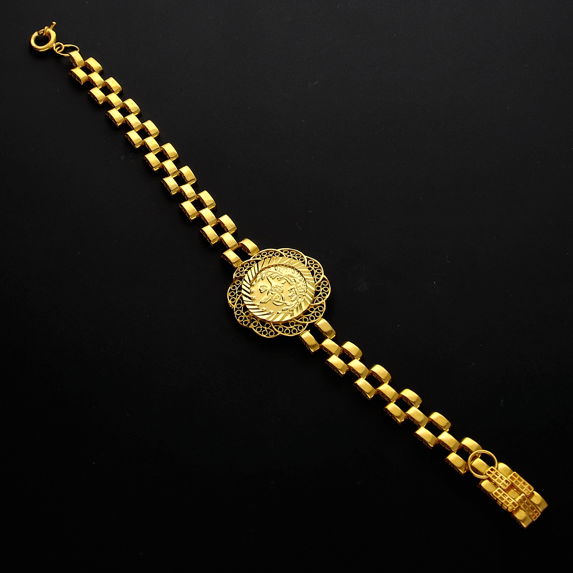 Gold Turkish Lira with Block Link Bracelet 21KT- FKJBRL21KM10259