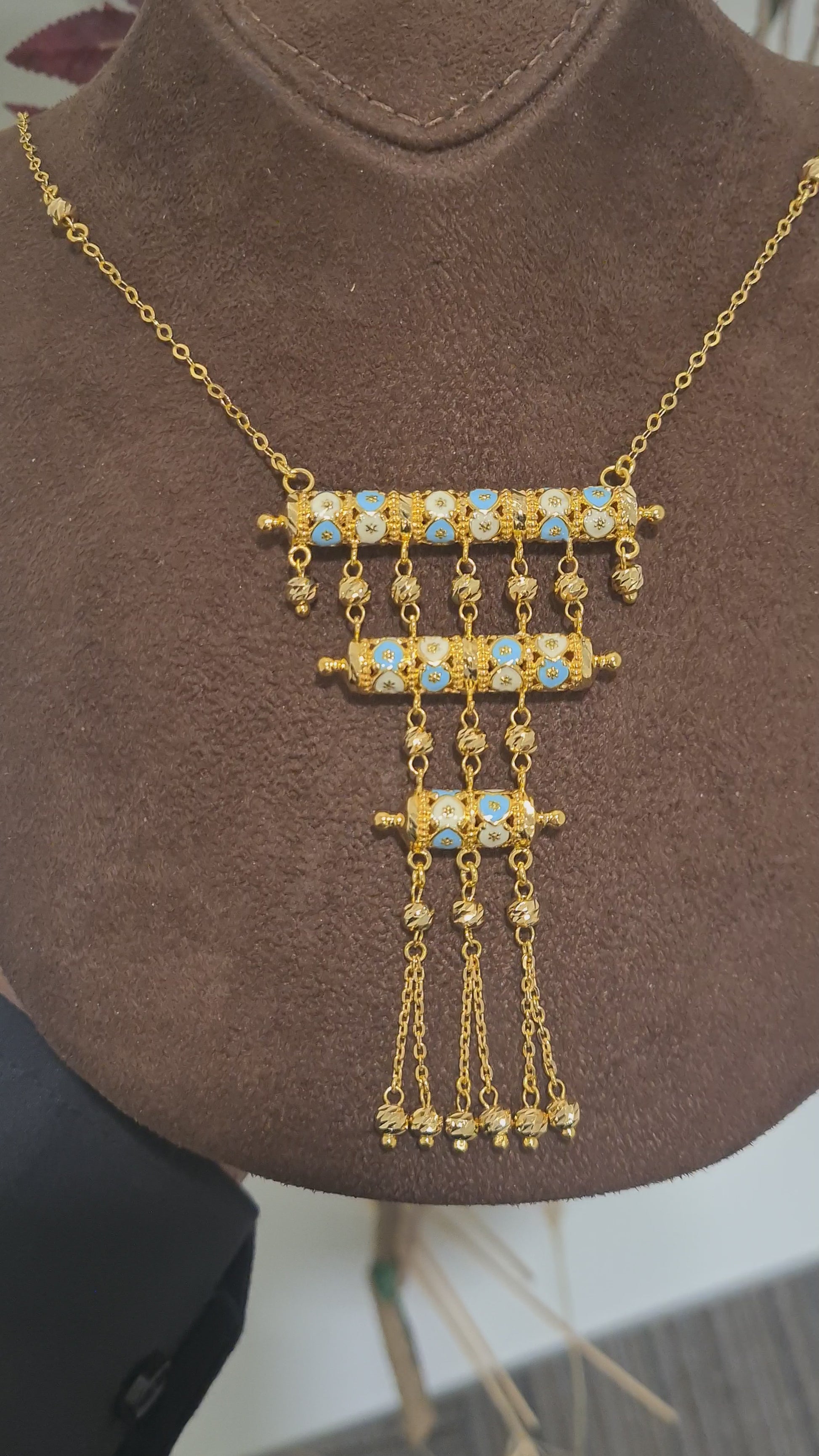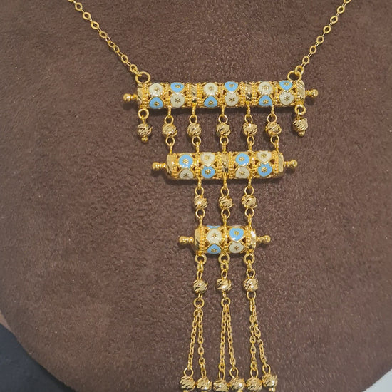 Gold Turquoise Accent Necklace 21KT - FKJNKL21KM10376