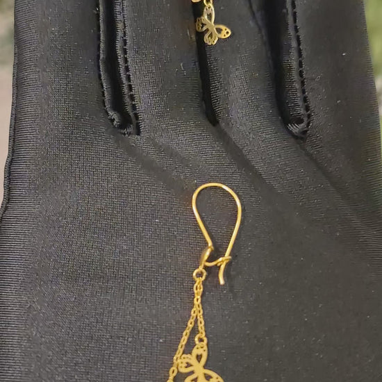 Gold Twin Butterfly Earrings 21KT - FKJERN21KM11529
