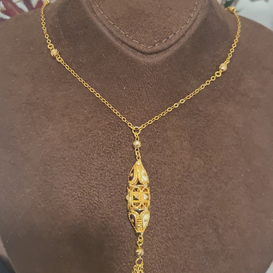 Gold Vintage Tassel Necklace 21KT - FKJNKL21KM10377