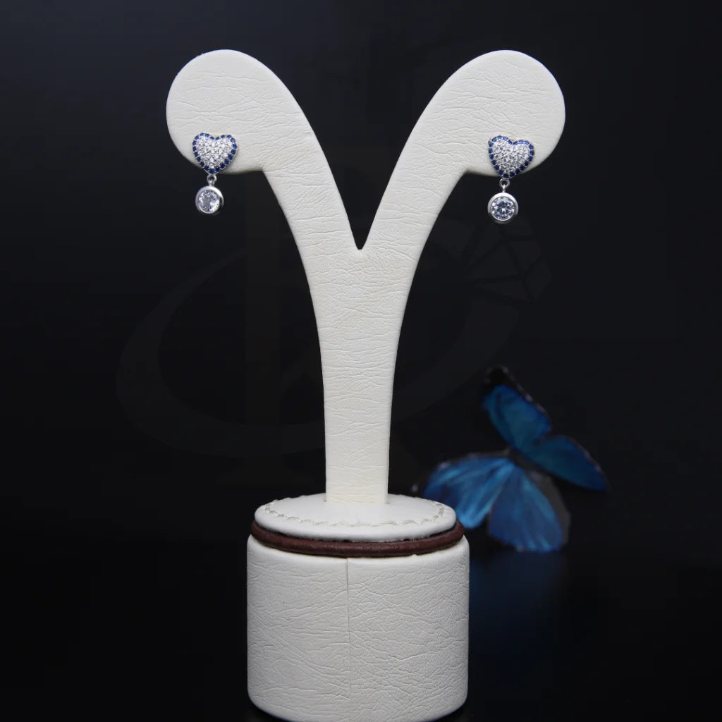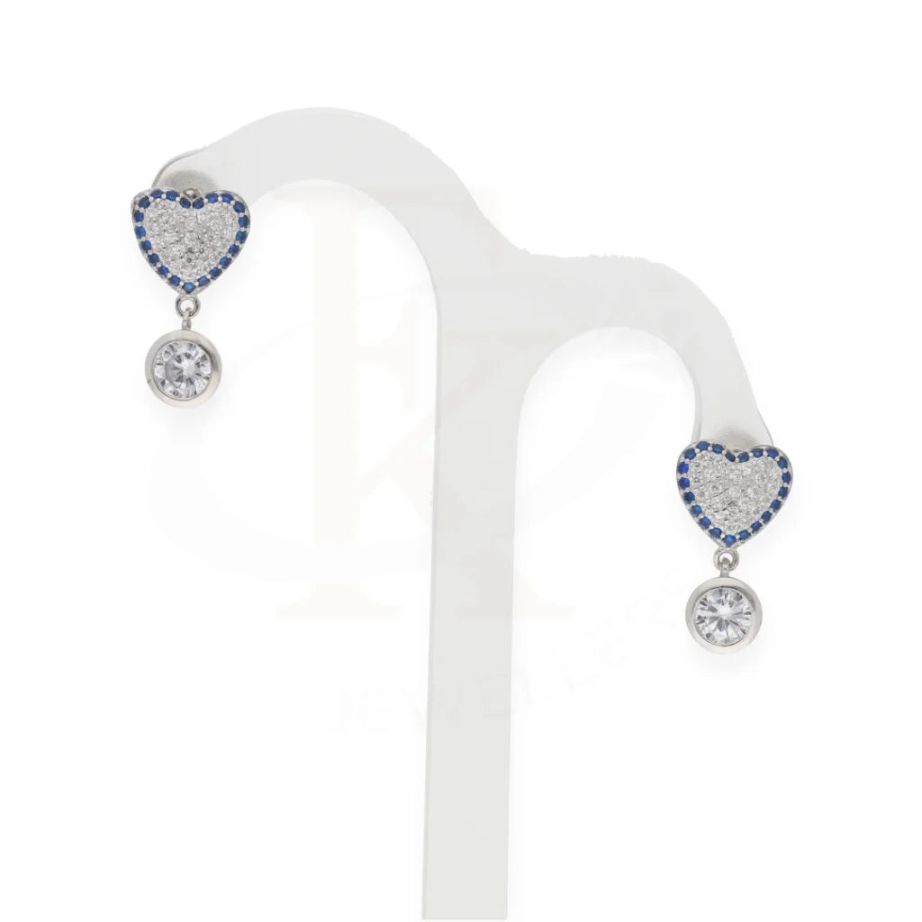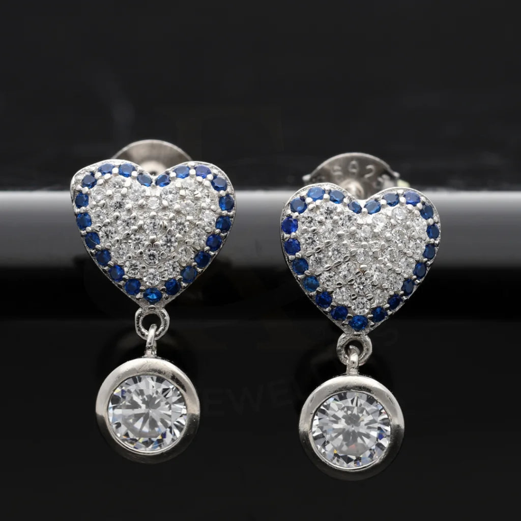 Sterling Silver 925 Blue Heart Shaped Cubic Zirconia Earrings - FKJERNSL8033
