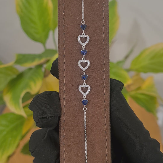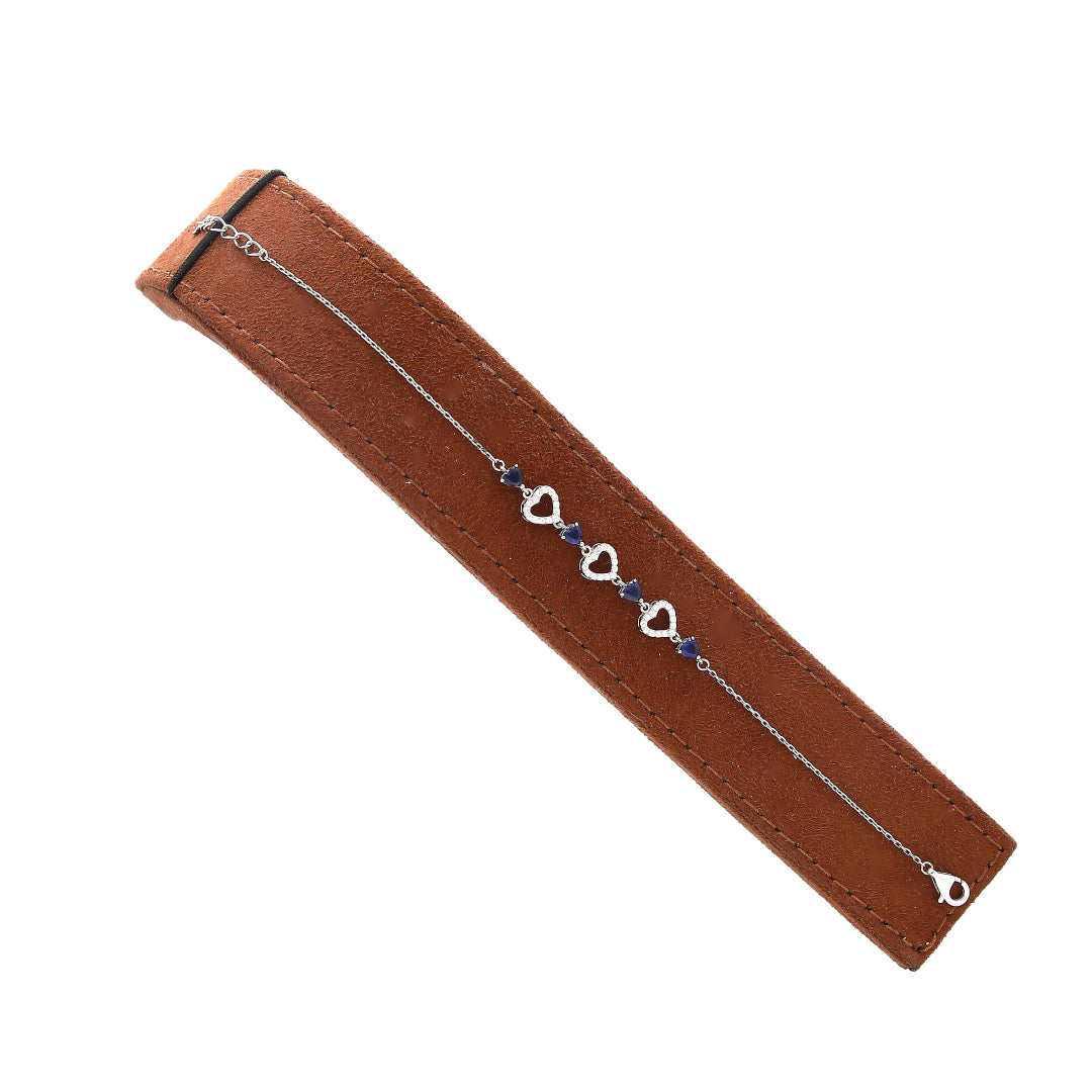Sterling Silver 925 Blue Sparkling Heart Bracelet - FKJBRLSL10543