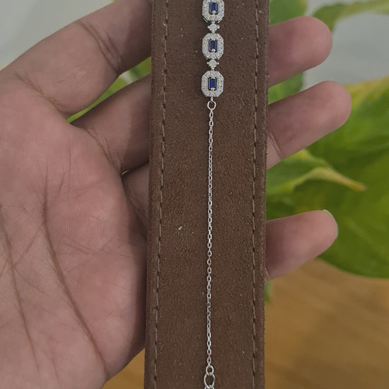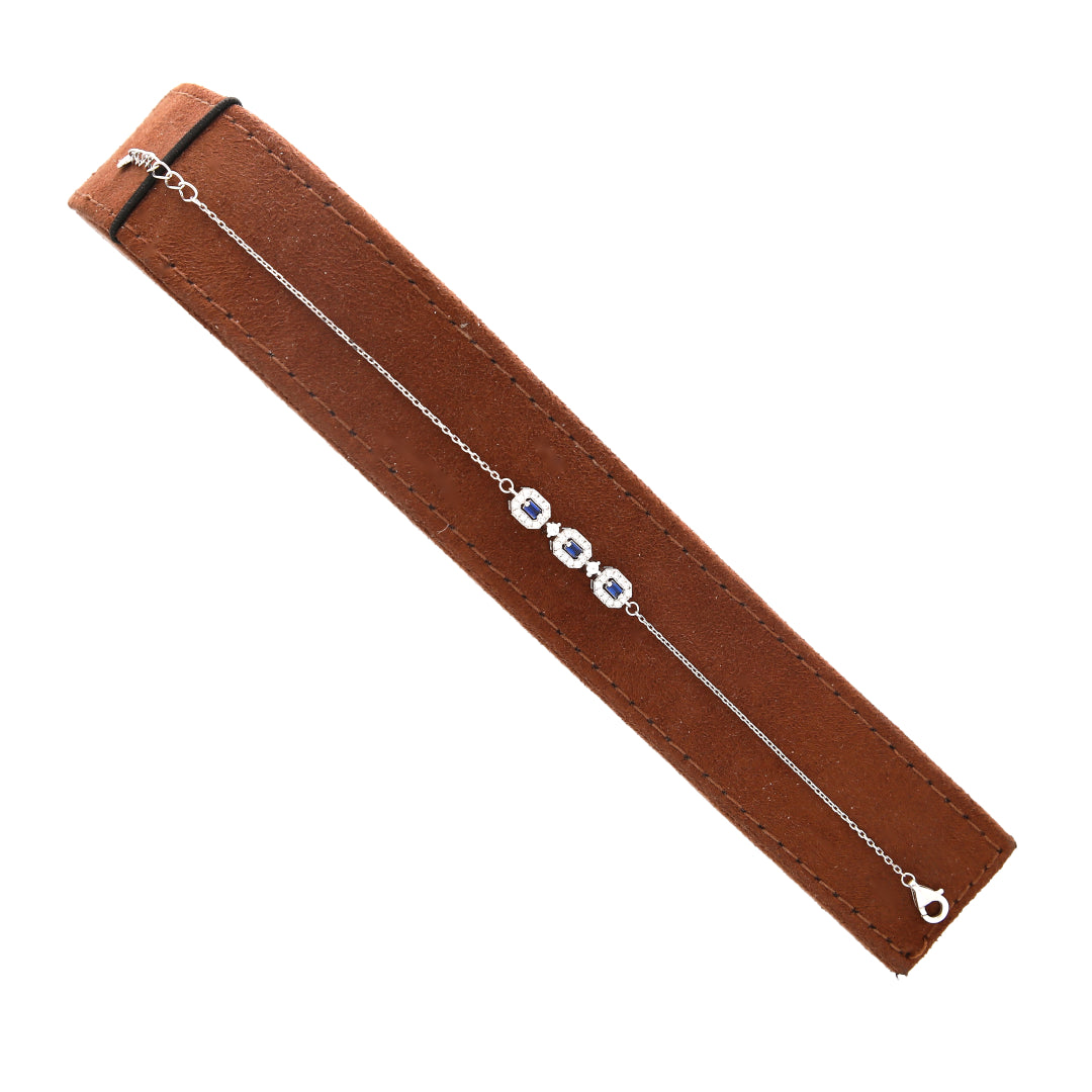 Sterling Silver 925 Blue Sparkling Square Bracelet - FKJBRLSL10577