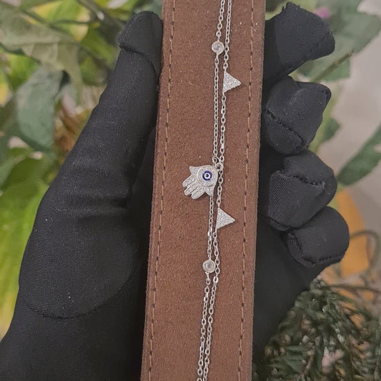 Sterling Silver 925 Chic Hamsa Hand Bracelet - FKJBRLSL10659