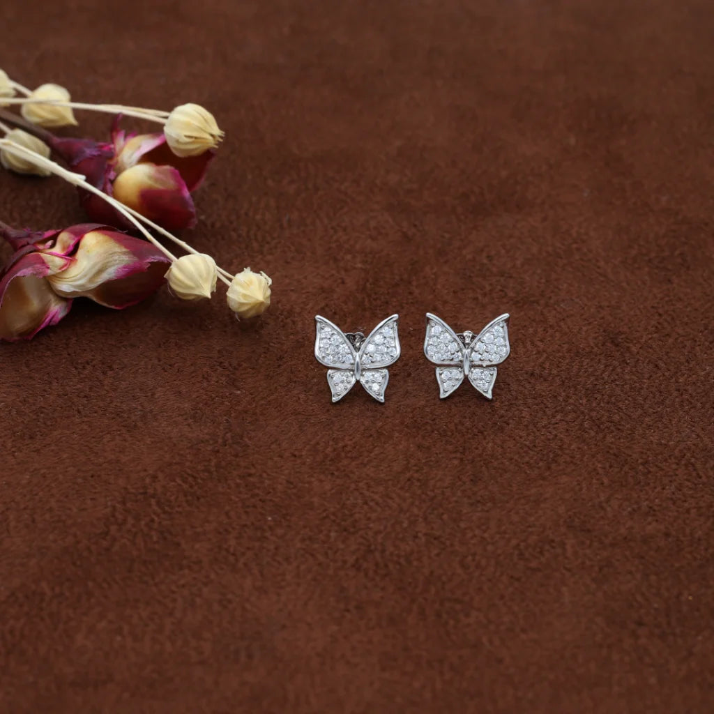 Sterling Silver 925 Cubic Zirconia Butterfly Stud Earrings - FKJERNSL8010