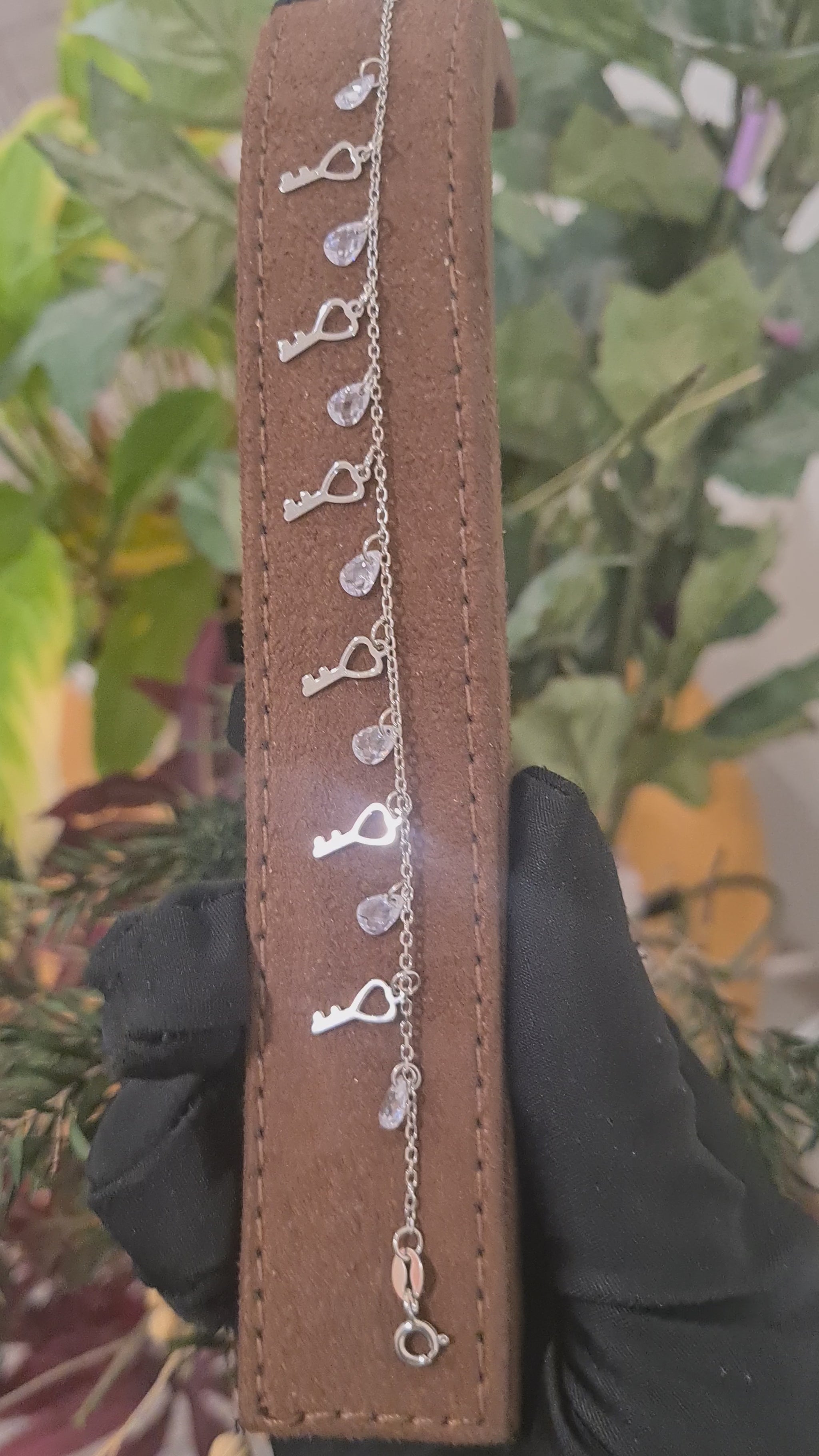 Sterling Silver 925 Dangling Key Charm Bracelet - FKJBRLSL10699