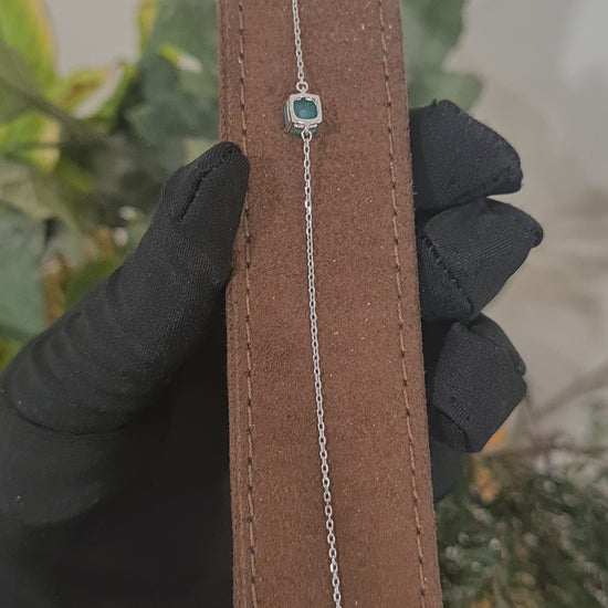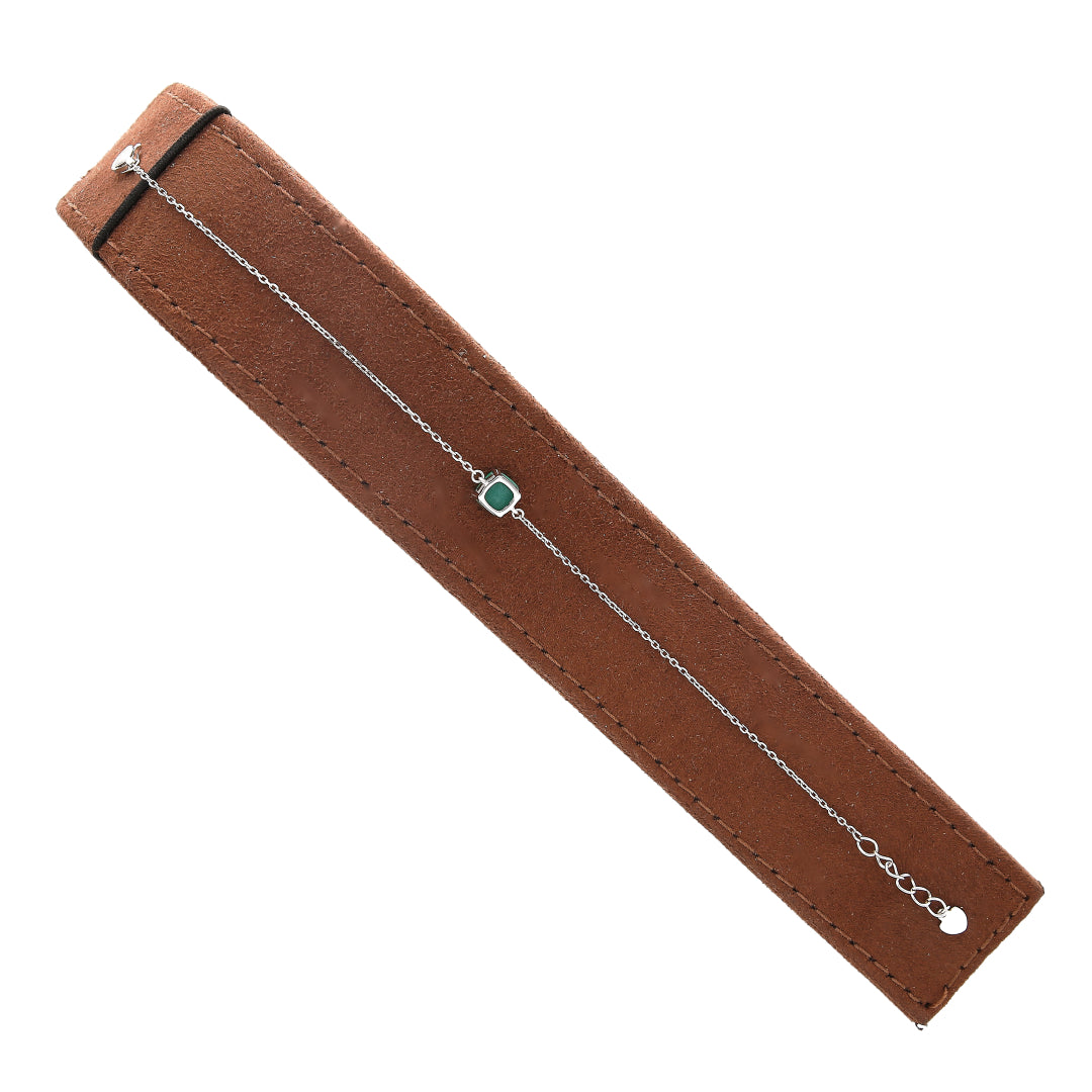 Sterling Silver 925 Square Shaped Green Stone Bracelet - FKJBRLSL10655