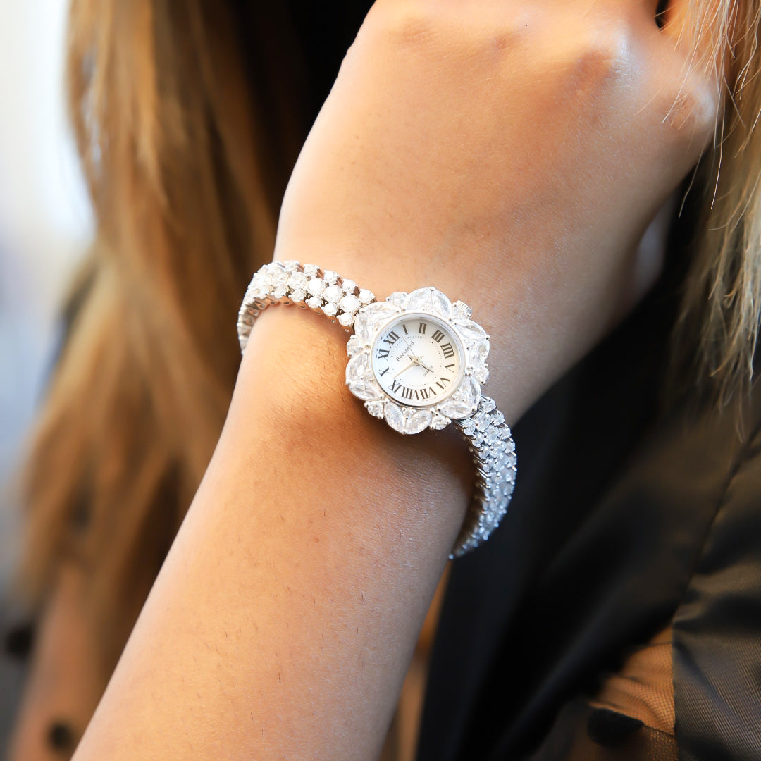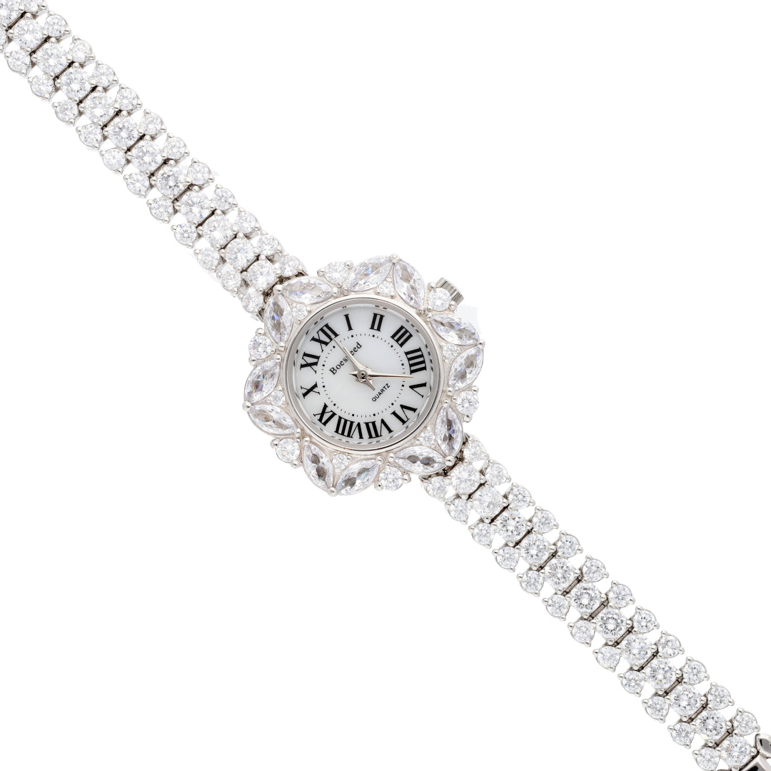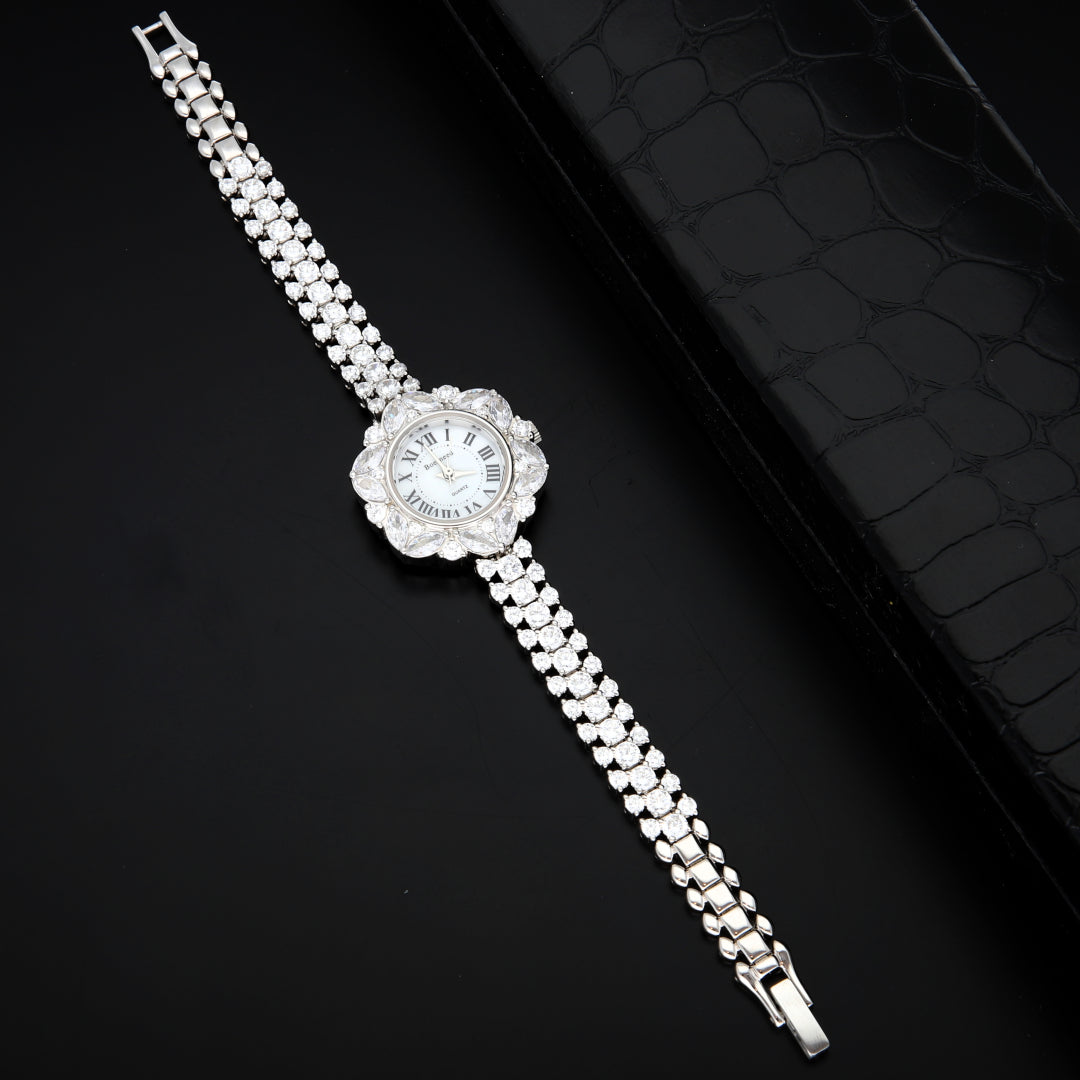 Sterling Silver 925 Elegant Stylish Flower Women Wrist Watch - FKJWHSL9626