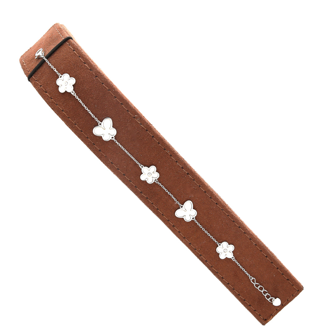 Sterling Silver 925 Floral Butterfly Charm Bracelet - FKJBRLSL10673