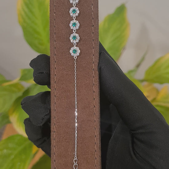 Sterling Silver 925 Floral Green Crystal Bracelet - FKJBRLSL10534