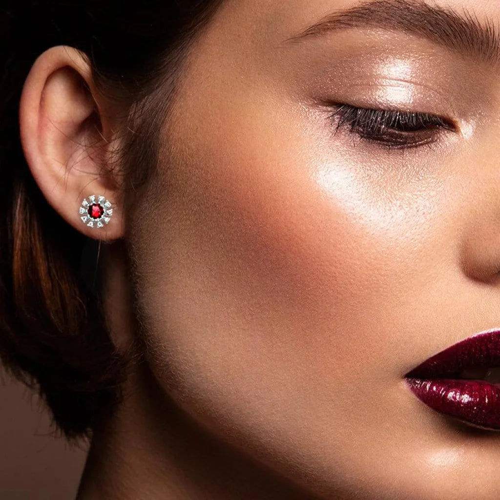 Sterling Silver 925 Flower Shaped Stud Earrings - FKJERNSL2538