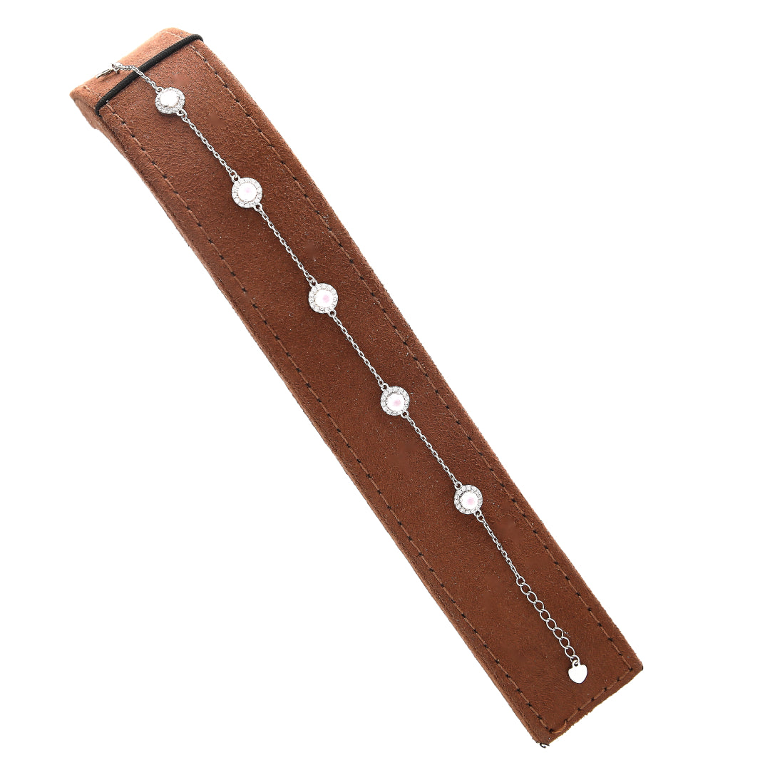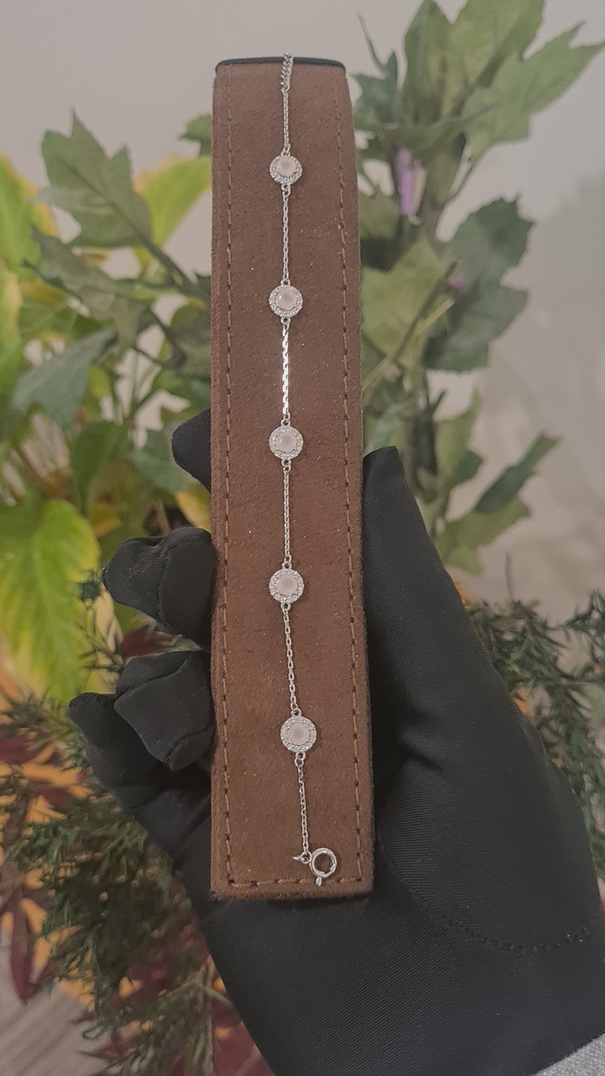 Sterling Silver 925 Round Pink Crystal Bracelet - FKJBRLSL10688