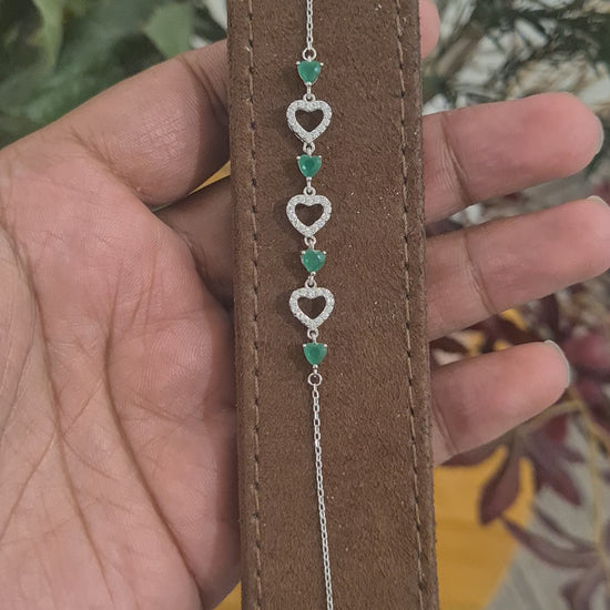 Sterling Silver 925 Green Heart Bracelet - FKJBRLSL10621