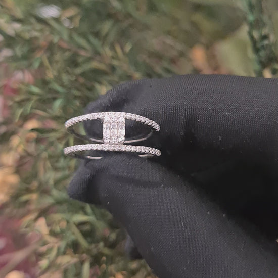 Sterling Silver 925 Halo Baguette Ring - FKJRNSL10742