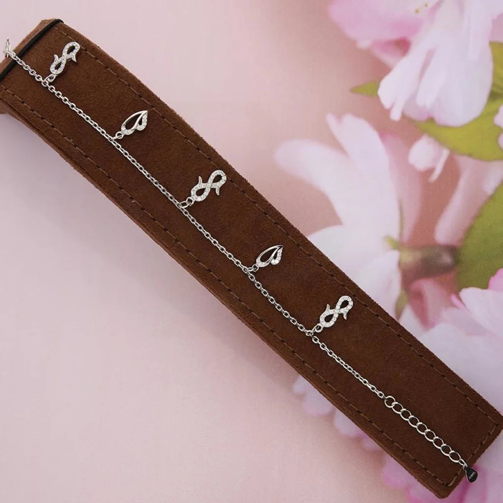 Sterling Silver 925 Hanging Heart and Infinity Bracelet - FKJBRLSL2612