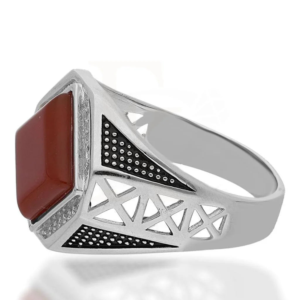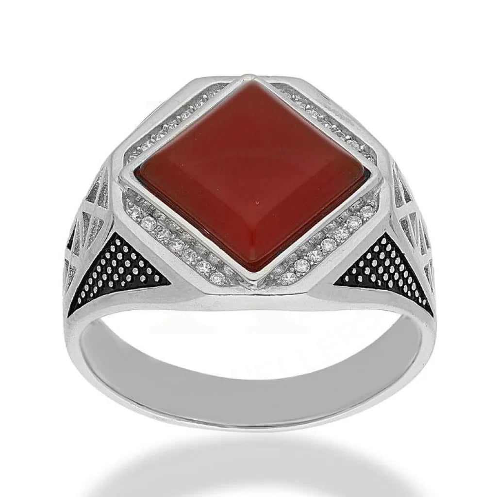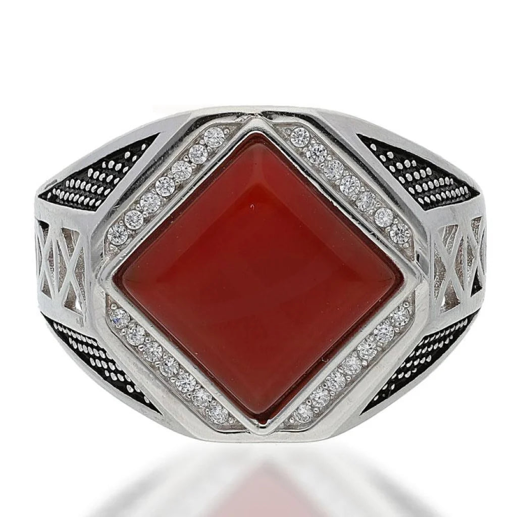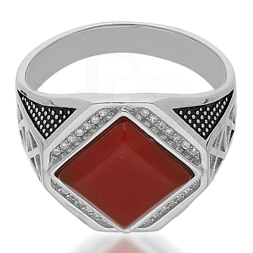 Sterling Silver 925 Men's Red Solitaire Ring - FKJRNSL2509