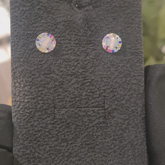 Sterling Silver 925 Rainbow Opal Earrings - FKJERNSL10836