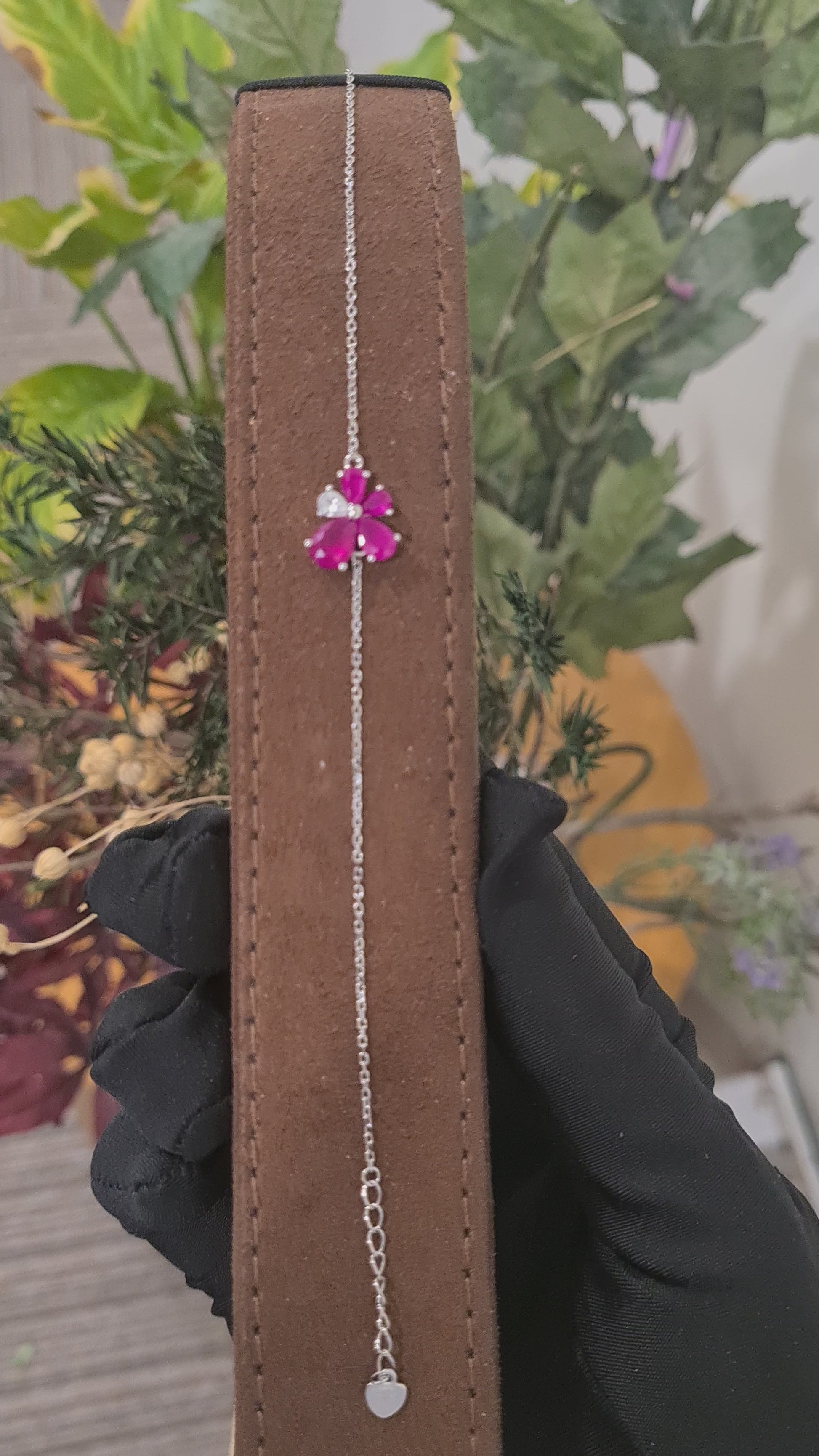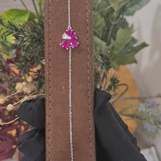 Sterling Silver 925 Red Floral Bracelet - FKJBRLSL10675