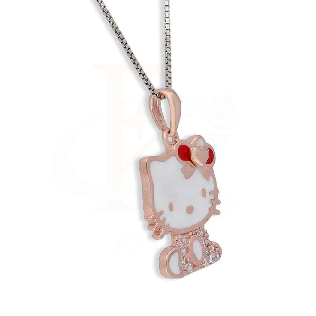 Sterling Silver 925 Rose Gold Plated Necklace (Chain with Hello Kitty Pendant) - FKJNKLSL3002