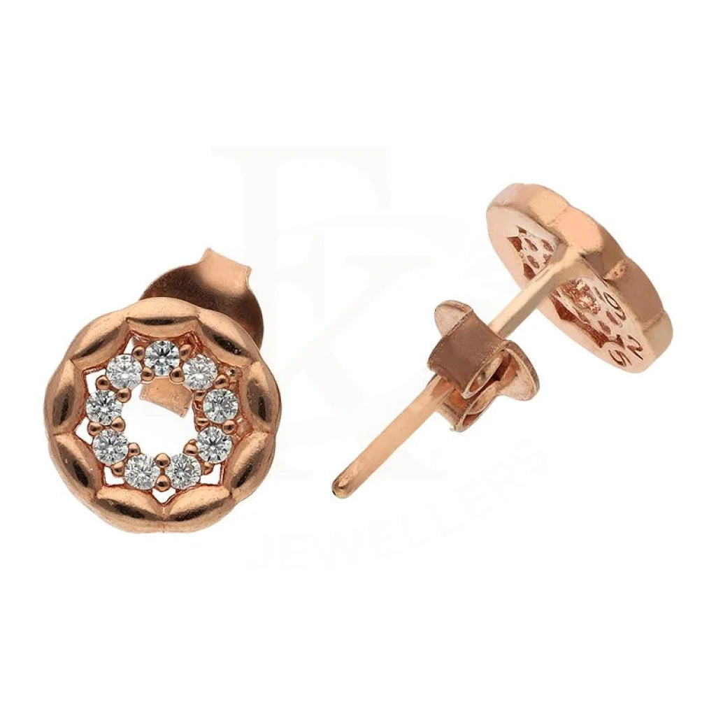 Sterling Silver 925 Rose Gold Plated Round Stud Earrings - FKJERNSL2504